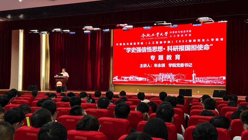 9月3日下午,计算机与信息学院2022级研究生新生入学教育于翡翠科教楼报告厅举行,学院党委书记年永琪作了题为“学史强信悟思想,科研报国担使命”的专题报告。